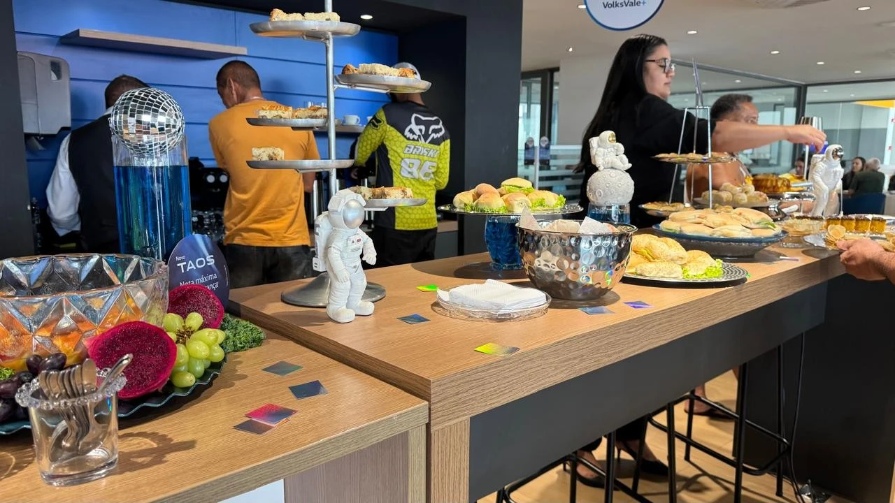 A decoração do evento foi inspirada no vídeo oficial de lançamento do Volkswagen Taos e seguiu um conceito espacial e futurista, criando uma atmosfera moderna e envolvente. Elementos como iluminação cênica e detalhes na ambientação valorizaram o espaço e reafirmaram o Novo Taos como o grande astro do evento, atraindo todos os olhares para o modelo. A ambientação reforçou a identidade tecnológica do Novo Taos e tornou o momento ainda mais marcante e imersivo.